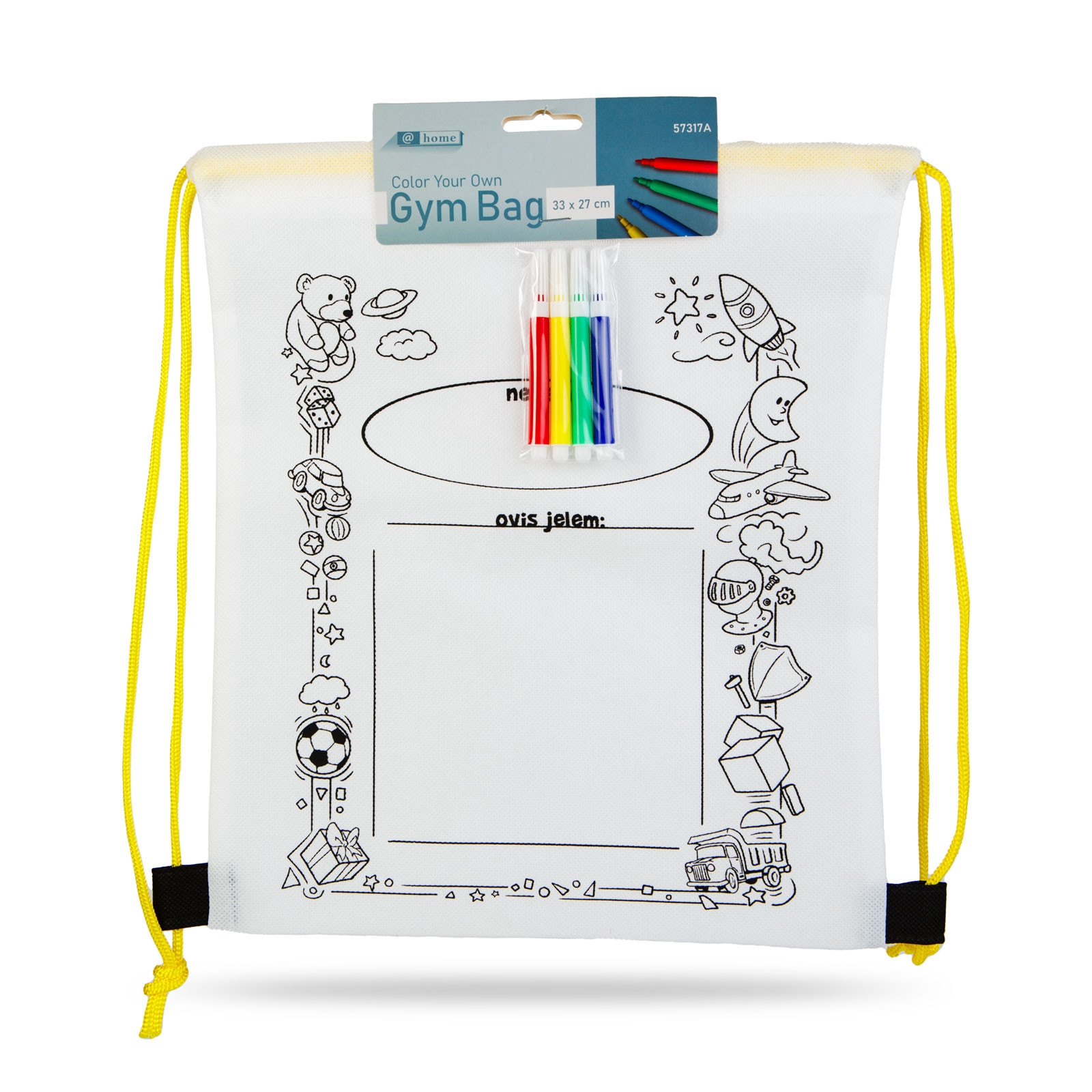 Színezd magad tornazsák, hátizsák színes filctoll készlettel. Kettő az egyben: tornazsák és foglalkoztató gyerekeknek. Színezéskor a zsák két anyaga közé vastagabb papírt kell tenni, hogy a hátoldalra ne kerüljön festék.