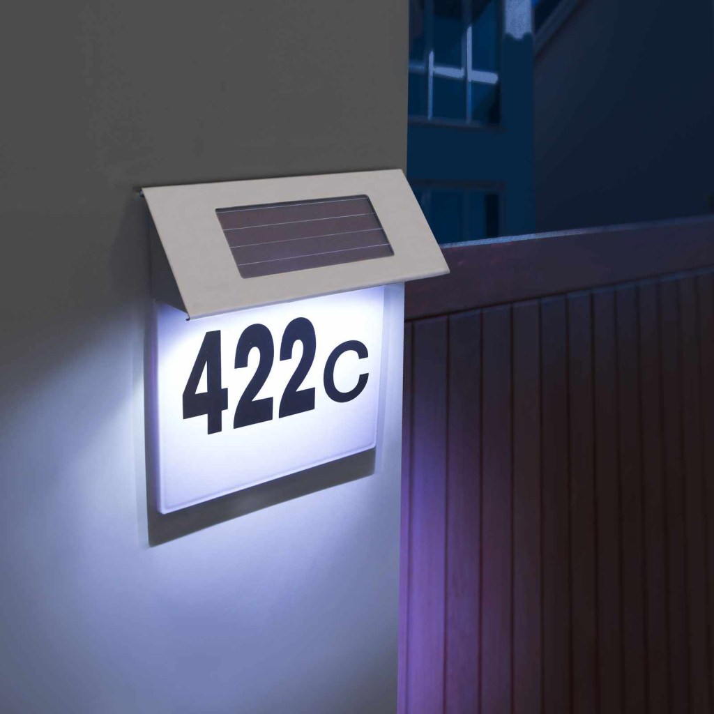 Elegáns szolár házszám fény, ami minden bejáratot különlegessé varázsol. A felső megvilágítású, szabadon lógó plexi lemezre akár 3 jegyű szám is elfér, így házszáma éjszaka, rossz látási viszonyok között is leolvasható marad. Az csomagban lévő öntapadós számok közül tetszés szerint kiválaszthatja az Önnek szükségeset!