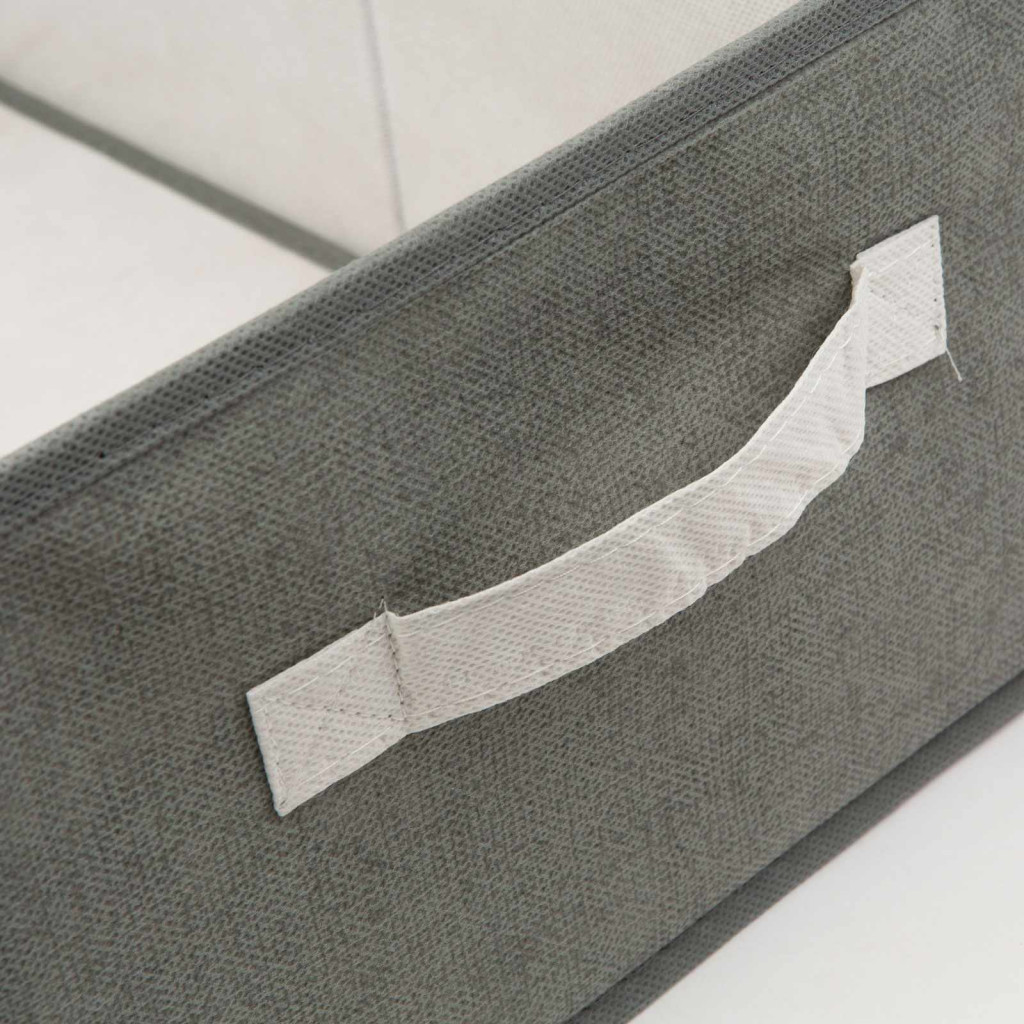 Fedezze fel a praktikus és stílusos tárolási megoldásainkat! Ez a tárolódoboz a tökéletes választás, a rend és a szervezettség fenntartásához otthonában.A tárolódoboz könnyű, de tartós szerkezete biztosítja, hogy hosszú távon is megbízható legyen a rendszerezésben. A külső réteg minőségi szövetből készült, ami nem csak esztétikus megjelenést kölcsönöz, hanem ellenálló és könnyen tisztítható is. A belső szerkezet merevségét többrétegű, masszív kartonlap biztosítja.A tárolódoboz kényelmes méretének köszönhetően könnyedén illeszkedik a polcokra, szekrényekbe vagy akár az ágy alá is. Ezáltal maximálisan kihasználhatja a rendelkezésre álló helyet, miközben fontos tárgyait rendezetten és könnyen hozzáférhető módon tárolhatja.A szövet tárolódoboz tökéletes választás lehet ruhák, cipők, játékok, könyvek vagy bármely más tárgy rendezett tárolásához. A használaton kívüli, kis helyen történő tárolást biztosítja, hogy kivehető az alja, mely után könnyen összezárható és tárolható.