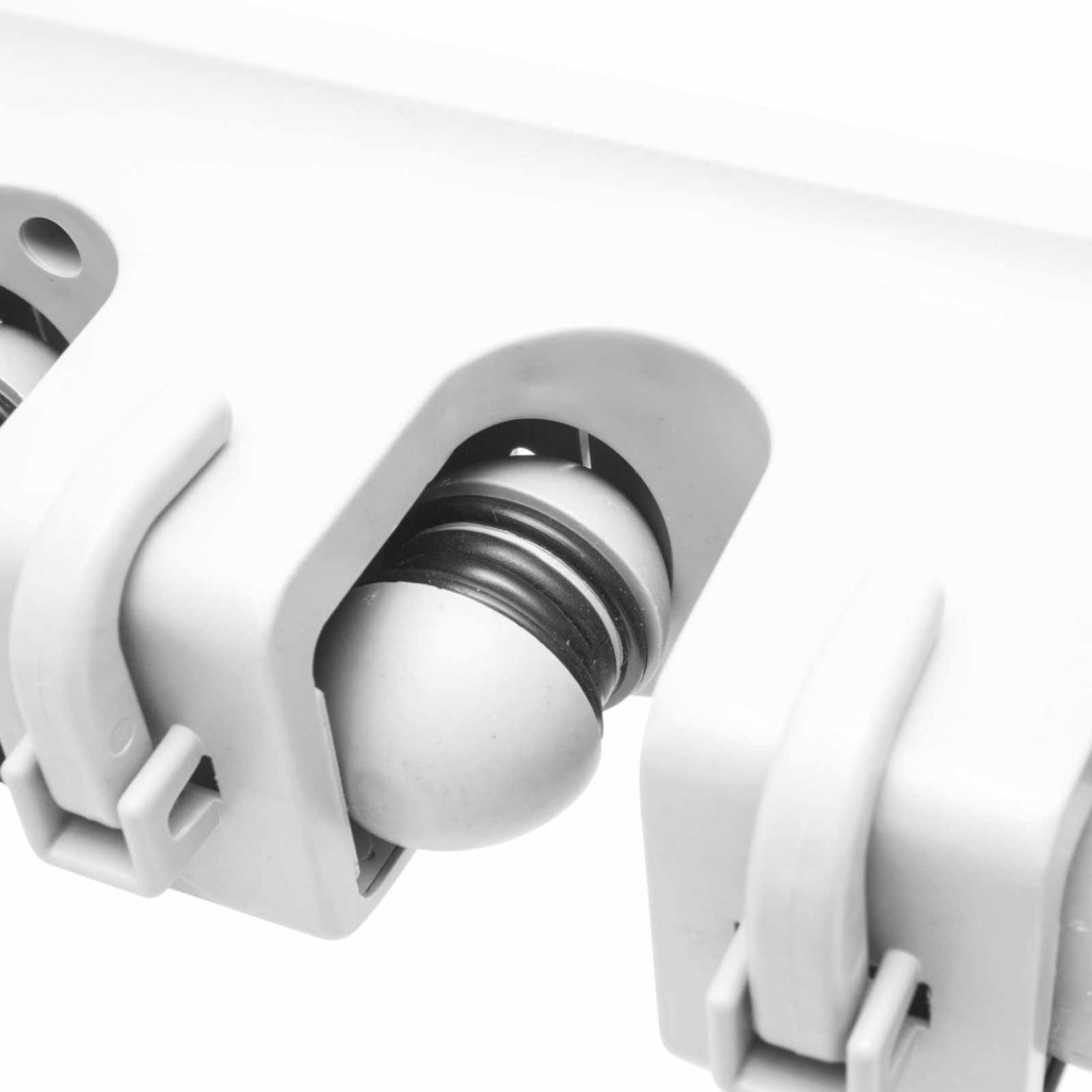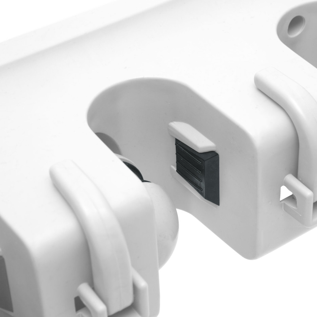 Mindennapi használati tárgyak és szerszámok helytakarékos tárolására egyaránt alkalmas. A tartón helytakarékosan tárolhatók pl. a tisztítóeszközök, szerszámok. Kül- és beltéri használatra. 5 tárolóhely bármely típusú eszközhöz (nyélátmérő min. 1,5 - max. 3,5 cm). A nyél automatikusan a helyére kattan. Falra rögzíthető 6 db csavarral (tartozék). A tartón kihúzható akasztók is találhatók, melyekre törlőkendők, rongyok, kesztyűk is felakaszthatók.