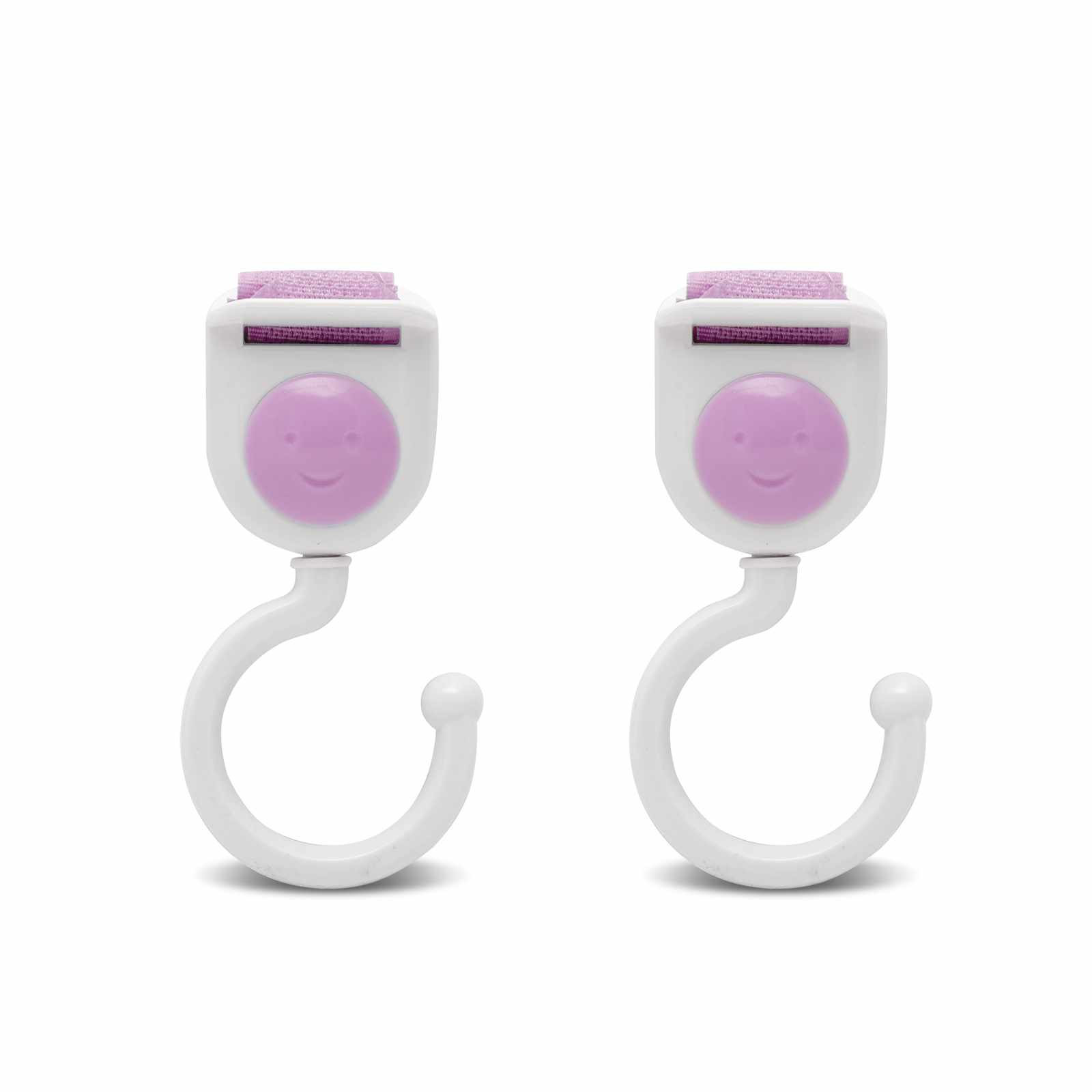 Univerzális kampó, melyet babakocsira, hordozóra is lehet rögzíteni a tépőzár segítségével. Táska, játék stb. akasztható rá.