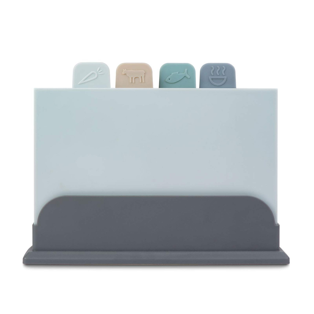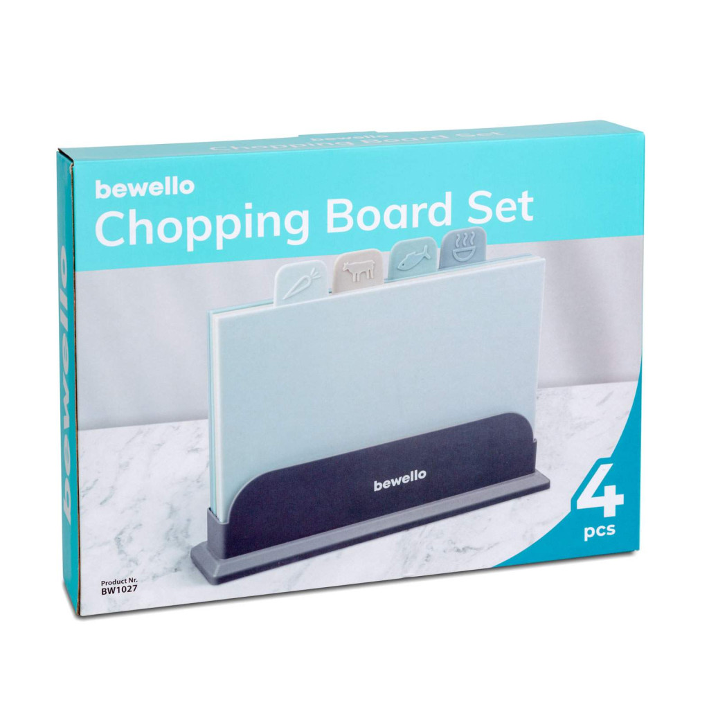 A szett tartalmaz 4 db különböző színű vágódeszkát: A világosszürke deszka a zöldségekhez, a bézs színű húsokhoz, a zöld a halhoz és a kékes-szürke pedig egyéb hozzávalókhoz használható. Ezáltal könnyedén megkülönböztethető, hogy melyik deszkát érdemes használni az adott alapanyag feldolgozásához. A deszkák mérete és formája ideális az alapanyagok hatékony vágásához és aprításához. A műanyag könnyű tisztítást tesz lehetővé, így könnyedén eltávolíthatóak a maradék anyagok és szennyeződések.