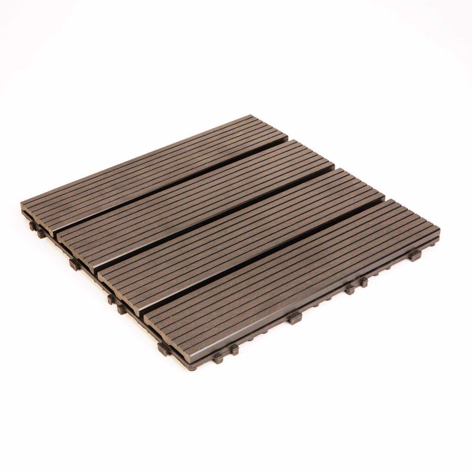 Burkolja teraszát, erkélyét minőségi, WPC padlóburkolattal! A 30 x 30 cm-es egységek könnyen egymáshoz kapcsolhatóak, így tetszőleges alakzatban stabil járófelület készíthető, akár kerti ösvény, napozóterasz, pihenősziget is kialakítható belőle. Használható beltéren, fedett helyen, de akár kültéren is. Ellenáll a időjárás viszontagságainak, napsütésnek, kártevőknek, víznek. Vásárlás után semmilyen felületkezelésre nincsen szükség, használatra készen kapható.