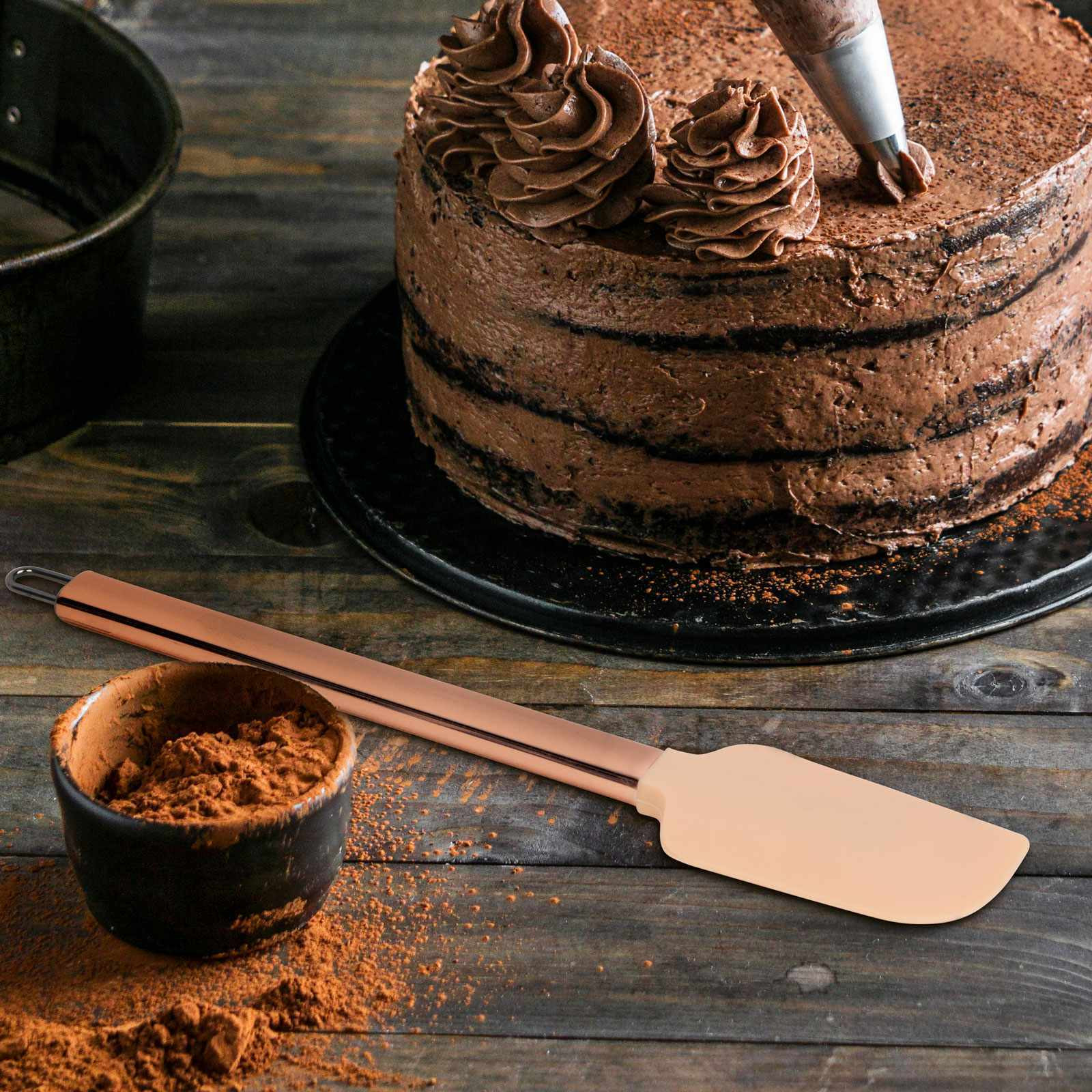 Jól felszerelt konyhák alap kelléke a szilikon spatula, amely segítségével könnyen formázhat, keverhet habokat, krémeket, szószokat. A spatula, hőálló szilikonból készült rugalmas feje megakadályozza, hogy főzés közben sérüljön az edény felülete. A spatula rozsdamentes acél nyéllel rendelkezik, amely elegáns megjelenést és tartósságot nyújt a használat során. A hosszú nyél könnyen kezelhető, kényelmes és hatékonyan használható.